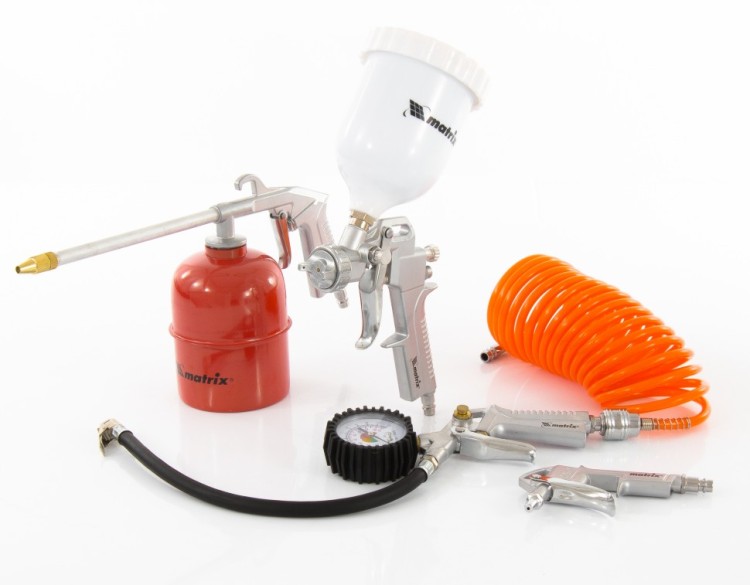 Набор пневмоинструмента, 5 предметов, быстросъемное соединение, краскораспылитель с верхним бачком Matrix, ( 57304 ) отзывы
