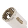 Алмазное сверло ТМ Matrix предназначено для сверления отверстий в керамограните, стекле и керамической плитке при помощи дрели или шуруповерта. Обеспечивает точное сверление без сколов. В комплекте с алмазным кольцевым сверлом идет направляющее сверло, которое облегчает процесс засверливания и предотвращает смещение. Благодаря 3-х гранному хвостовику сверло не прокручивается в патроне во время работы.Сверление производить в безударном режиме с использованием водяного охлаждения.